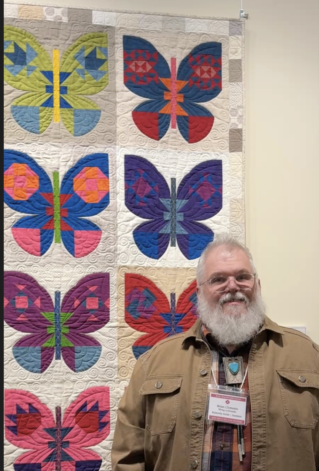Like most quilters Brian’s quilting story has many over zellous ambitions that he met with his best decisions at the time. Looking back – he calls some of those choices ‘bad’ – but they have led him on a path of creating at least a 100 quilts mostly just for fun. Each year he challenges himself to create something extra-fantastic for the county fair and other exhibits – and has ended up with quilts in several of RMQM’s Men’s exhibits, as well as other regional, national and international quilt shows and museums. He has even ended up in a few magazines! Brian has gone from longarm quilting his own quilts, to doing it for clients as well for about 10 years. His ability with longarming is evident in his exhibit quilts, as it totally adds an additional layer of artistry to each of his quilts.